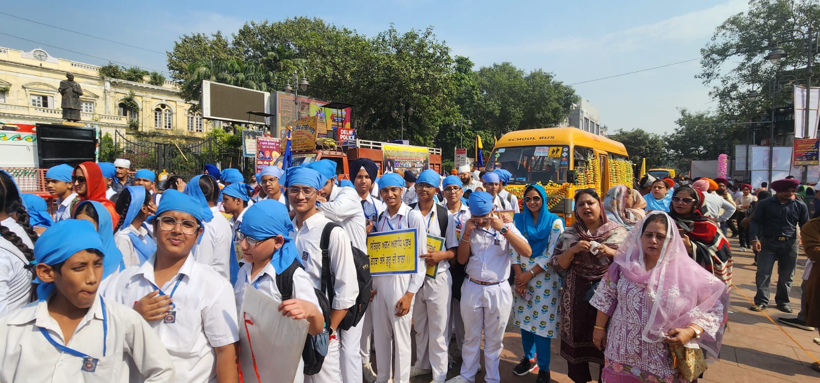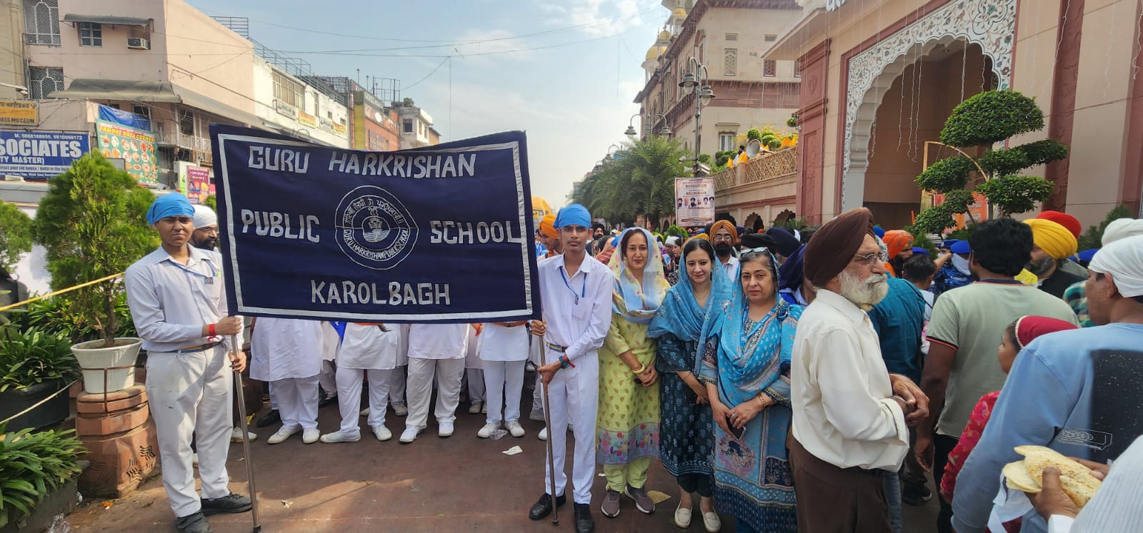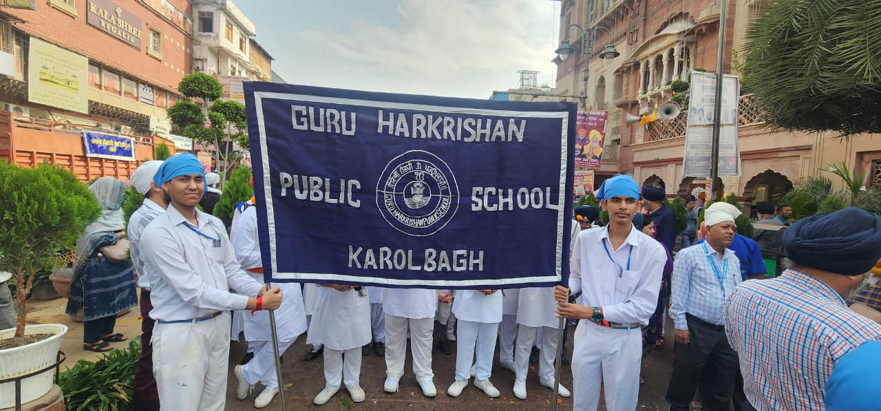 Description : HPS KAROL BAGH JOINS THE SACRED WALK OF FAITH DEDICATED TO 556th PRAKASH PURAB OF GURU NANAK DEV JI With the aim of honouring the 556th Prakash Purab of Guru Nanak Dev Ji and spreading his divine message of oneness ,equality, selfless service and peace the students and staff of Guru Harkrishan Public School Karol Bagh participated in Nagar Kirtan organised by D.S.G.M.C. with deep devotion on 4th of November, 2025 Led by Panj Pyaras,after the ardas rendition ,the Nagar Kirtan started from Gurudwara Sis Ganj Sahib filling the,atmosphere with soulful hymns and chants of Satnam Waheguru. The spirit of unity and reverence could be felt as devotees walked togetger celebrating the life and teaching of Guru Nanak Dev Ji. Various band groups enthralled the audience with their scintillating performance. Gatka, the Sikh martial art was also performed. The students of the school also sang shabads from the holy hymns composed by Guru Nanak Dev Ji. The refreshments stalls were also put up by devotees for the children and sangat. The Nagar kirtan was an inspirational experience for one and all