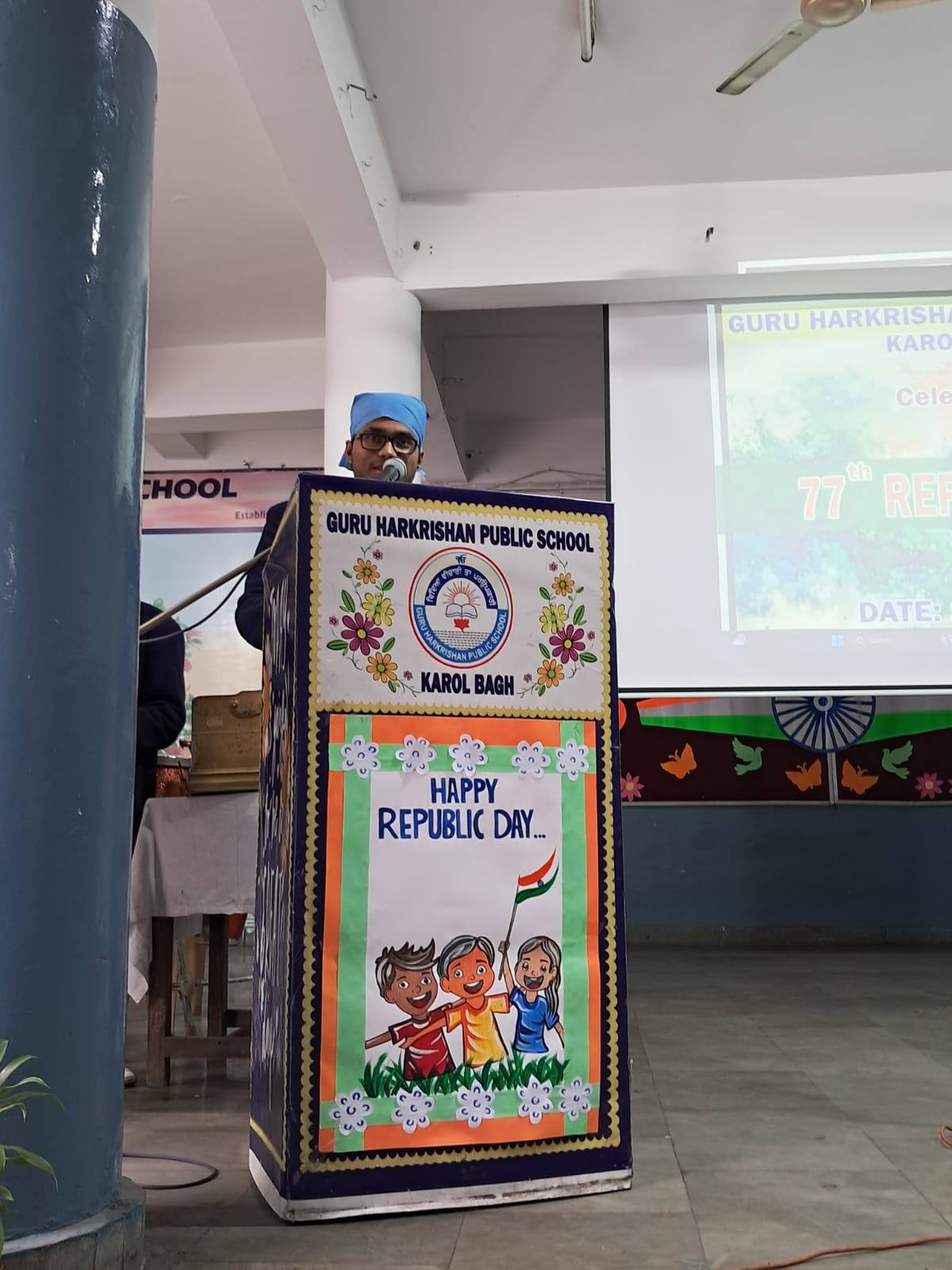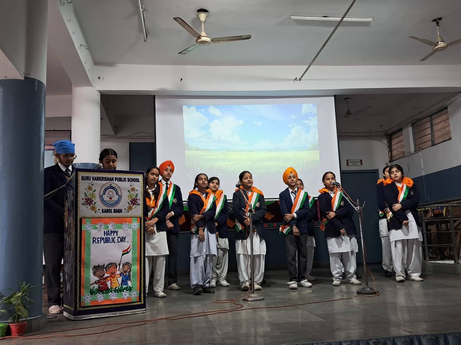 Description : Saluting the Constitution, Celebrating the Nation Guru Harkrishan Public School, Karol Bagh celebrated the 77th Republic Day on 27th January 2026 with great pride and patriotic fervour. The programme began with the school shabad, followed by the hoisting of the National Flag by the Hon’ble Chairman S. Paramjit Singh Ji Chandokh, Vice Chairman S. Jujhar Singh Ji, respected Principal Ms. Jasvinder Kaur, and other dignitaries. Students presented patriotic songs, speeches, poems, and cultural performances highlighting India’s rich heritage, democratic values, and unity in diversity, leaving them inspired with a deep sense of national pride and responsibility.