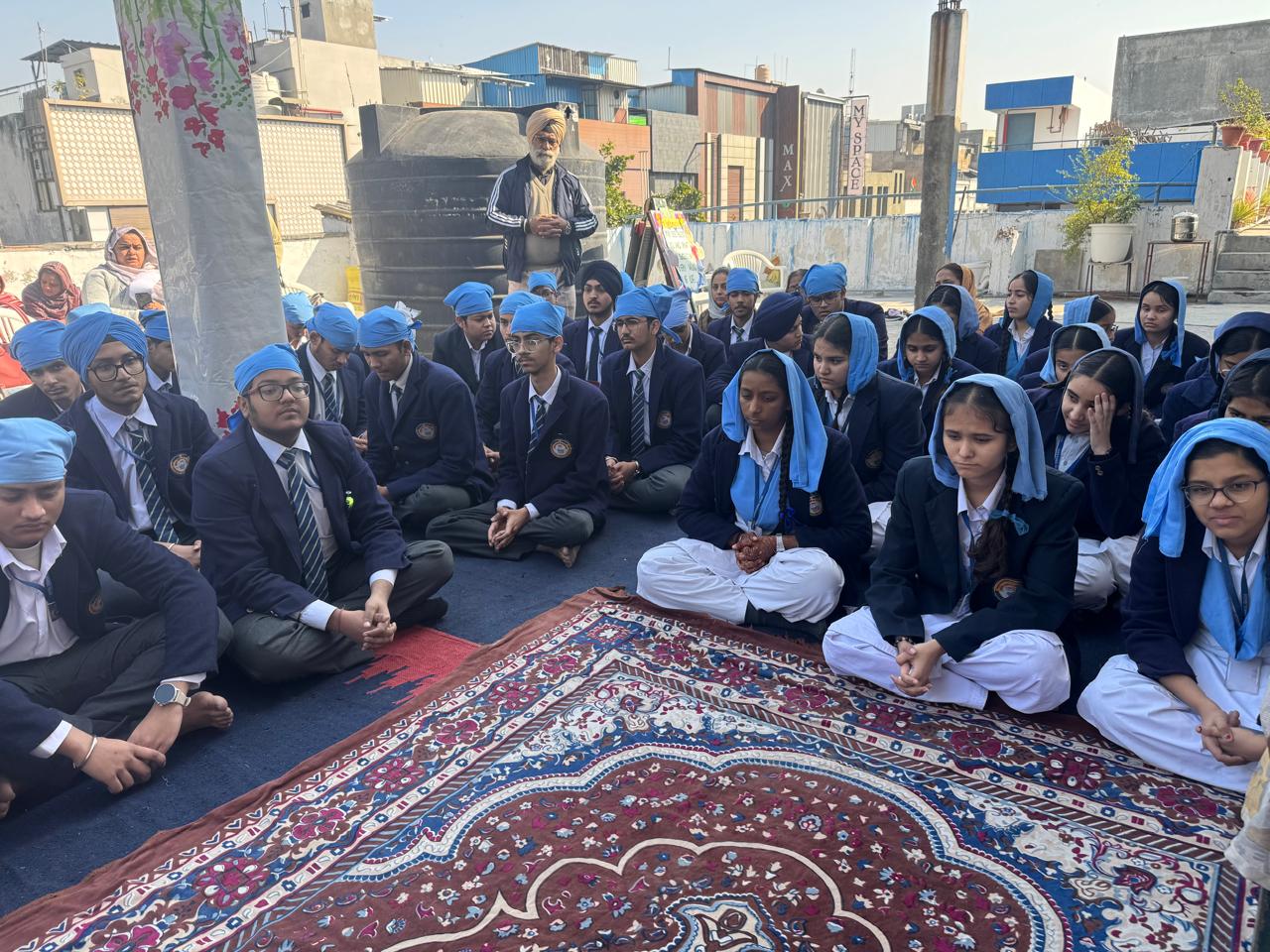 Description : Best Wishes for Class 10 & 12 Students On Wednesday, 24 December 2025, the School Governing Body, Principal, staff, and students of Classes 10 and 12 sought blessings at the School Gurdwara Sahib. The programme included the bhog of Sri Sehaj Path, Shabad recitation, Ardaas, and Hukamnama. The Chairman and Vice Chairman motivated students to believe in themselves and work diligently for success. The Principal encouraged students to remain calm and face challenges with perseverance. The programme concluded with the distribution of Karah Prashad.
