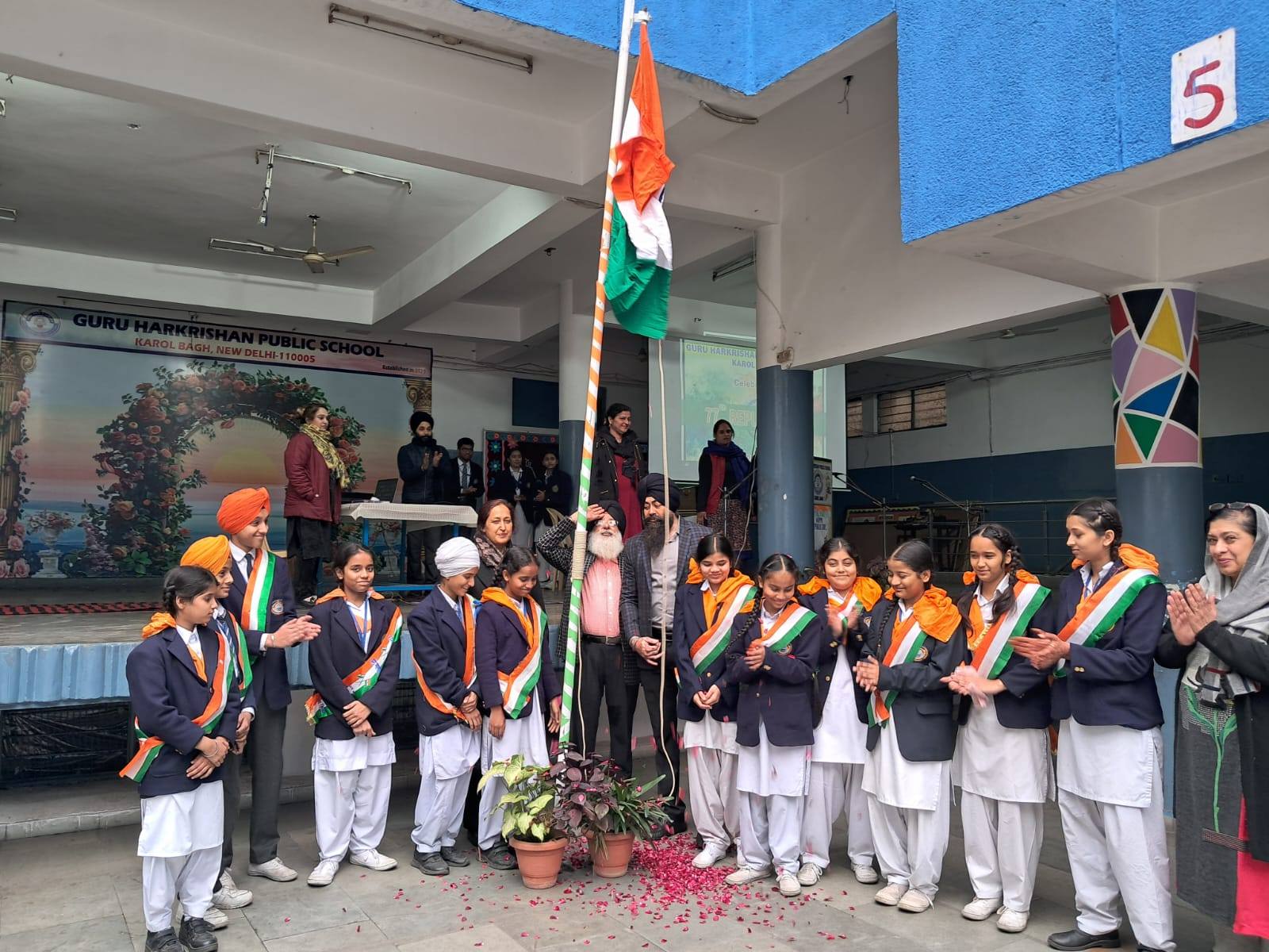 Description : Saluting the Constitution, Celebrating the Nation Guru Harkrishan Public School, Karol Bagh celebrated the 77th Republic Day on 27th January 2026 with great pride and patriotic fervour. The programme began with the school shabad, followed by the hoisting of the National Flag by the Hon’ble Chairman S. Paramjit Singh Ji Chandokh, Vice Chairman S. Jujhar Singh Ji, respected Principal Ms. Jasvinder Kaur, and other dignitaries. Students presented patriotic songs, speeches, poems, and cultural performances highlighting India’s rich heritage, democratic values, and unity in diversity, leaving them inspired with a deep sense of national pride and responsibility.
